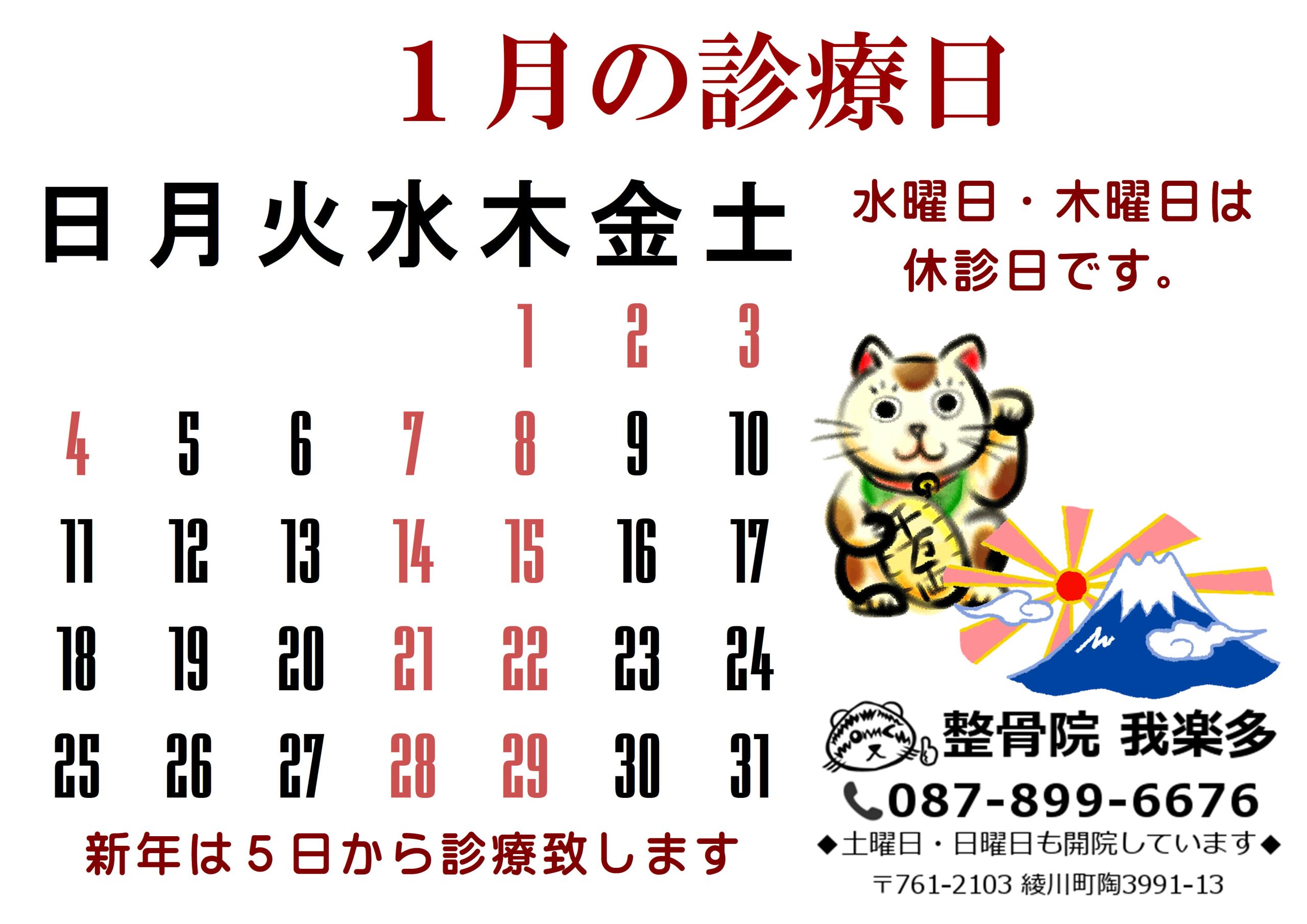 2026年1月の休診日のお知らせです。